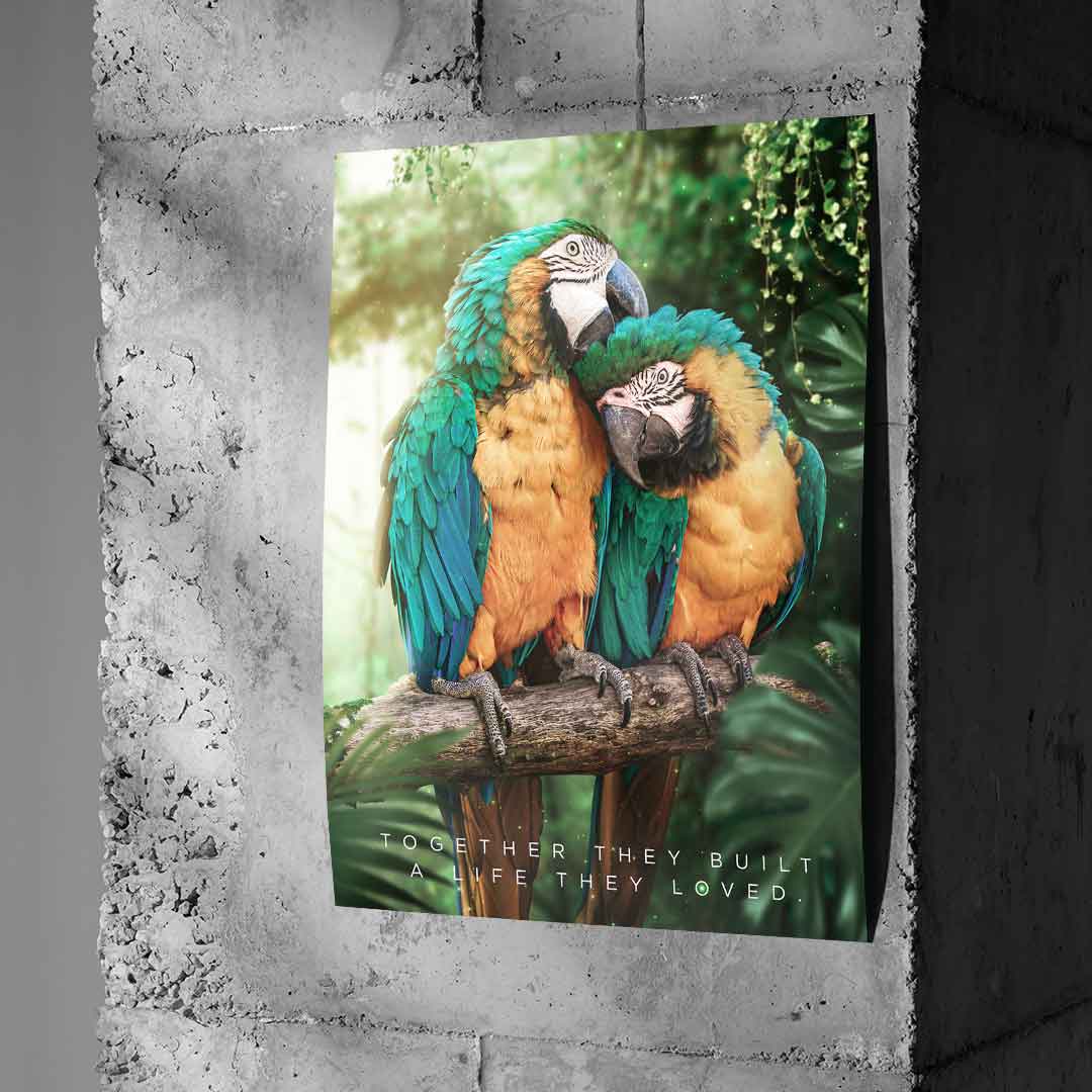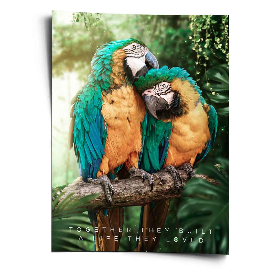 DOTCOMCANVAS® Premium poster with TOGETHER THEY BUILT A LIFE THEY LOVE Motif.
